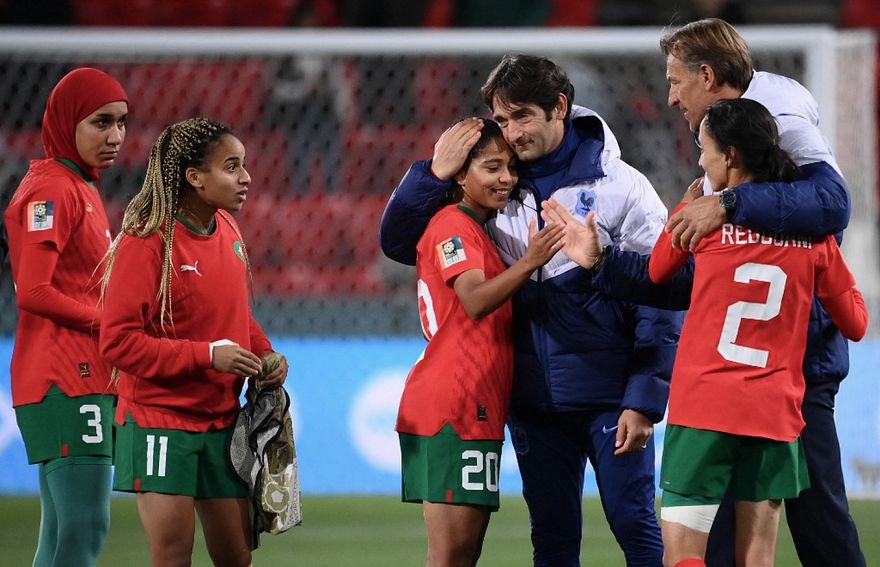 ނޮކައުޓް ބުރުގެ މެޗަށް ފަހު މޮރޮކޯގެ ކޯޗު، ފްރާންސްގެ ބައެއް ކުޅުންތެރިންނާ ވާހަކަ ދައްކަނީ.-- ފޮޓޯ: އޭއެފްޕީ