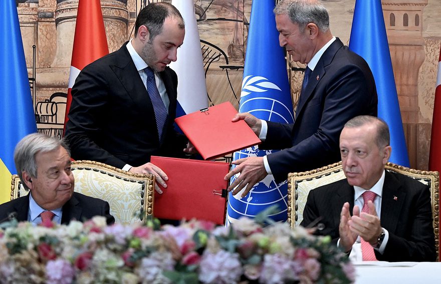އދ. މަޖިލީހާއި ތުރުކީ ވިލާތުގެ ބައިވެރިވުމާއި މެދުވެރިވުން މުހިންމު ދައުރެއް އަދާކޮށްގެން، މިއަހަރުގެ ޖުލައި މަހުގެ ކުރީކޮޅު، ހަތަރު މަސްދުވަހަށް ގާއިމުކުރި އެއްބަސްވުމުގެ މުއްދަތު މިއަންނަ ހޮނިހިރު ދުވަހު ހަމަވާނެ އެވެ. މުއްދަތު ހަމަވުމުގެ ކުރިން، އެ އެއްބަސްވުން ދަމަހައްޓަން ރަޝިޔާ އިން އެއްބަސްވީ، އދ.ގެ ސެކްރެޓަރީ ޖެނެރަލް އެންޓޯނިއޯ ގުޓަރޭސް އާއި ތުރުކީ ވިލާތުގެ ރައީސް ރަޖަބް ތައްޔިބު އުރުދުޣާން، ރަޝިޔާގެ އިސް ވެރިންނާ އެކުގައި ދުވަސްތަކެއް ވަންދެން މަޝްވަރާ ކުރެއްވުމަށް ފަހުގަ އެވެ.