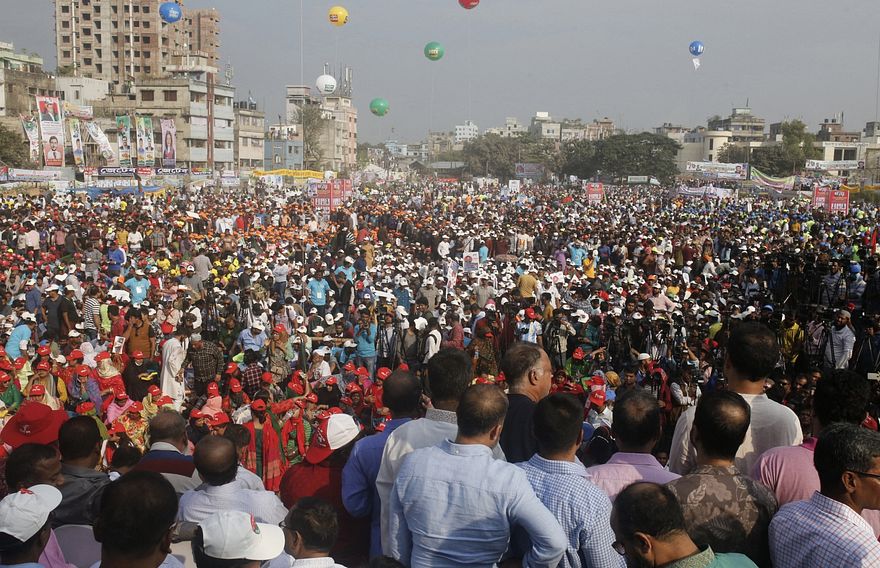 ބަނގްލަދޭޝްގައި އަވަސް އިންތިޚާބެއް ބޭއްވުމަށް ގޮވާލައި އިދިކޮޅު ޕާޓީން އިންތިޒާމުކޮށްގެން، ވެރިރަށް ޑާކާގައި އިއްޔެ ބޭއްވި މުޒާހަރާއެއްގައި އެތައް ހާސް ބަޔަކު ބައިވެރިވެ، ބޮޑުވަޒީރު ޝައިޚް ހަސީނާގެ އިސްތިއުފާ އަށް ގޮވައިފި އެވެ.