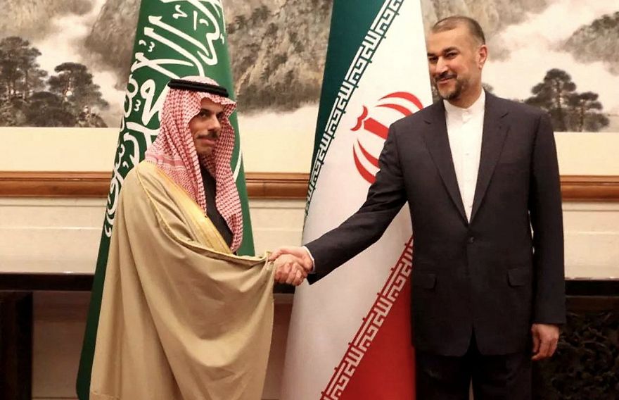 ސައޫދީ އަރަބިއްޔާގެ ޚާރިޖީ ވަޒީރު އަމީރް ފައިސަލް ބިން ފަރްހާން އާއި އީރާންގެ ޚާރިޖީ ވަޒީރު ހުސައިން އާމިރު އަބްދުއްލަހްޔާން ބައްދަލު ކުރެއްވީ ޗައިނާގެ ވެރިރަށް ބެއިޖިންގަ އެވެ. ދެ ގައުމުގެ ޚާރިޖީ ވަޒީރުން މި ބައްދަލުކުރެއްވީ، ސައޫދީ އަރަބިއްޔާ އިން، 2016 ވަނަ އަހަރު ސިޔާސީ ގުޅުން ކަނޑައިލިތާ ހަތް އަހަރަށް ފަހު، މި ދިޔަ މާޗް މަހުގެ 10 ވަނަ ދުވަހު އެ ގުޅުން އަލުން އިއާދަކުރުމަށް ފަހު އެވެ.