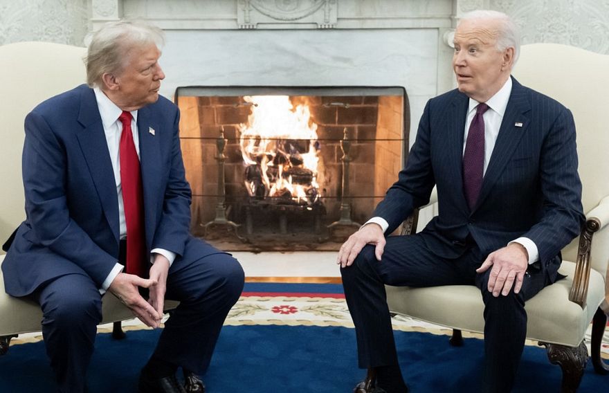 ރިޔާސީ އިންތިހާބުގެ ކެމްޕެއިން ތެރޭގައި، ޓްރަމްޕަކީ ޑިމޮކްރަސީއަށް އޮތް ނުރައްކަލެއްގެ ގޮތުގައި ބައިޑެން ތަކުރާރުކޮށް ސިފަކުރެއްވި ނަމަވެސް، ބައިޑެން ވަނީ ވެރިކަން ބަދަލުވުމުގެ މަރުހަލާއަށް ފުރިހަމަ އެއްބާރުލުން ދެއްވާނެ ކަމަށް ވިދާޅުވެފަ އެވެ. ބައިޑެންގެ ނައިބު ކަމަލާ ހެރިސްއާ ވާދަކުރައްވައި ޓްރަމްޕް ހޯއްދެވި ކާމިޔާބީއަށް ފަހު ބައިޑެން ވަނީ ޓްރަމްޕަށް ދައުވަތު ދެއްވައި އޮފީހަށް ގެންދަވައިފަ އެވެ.