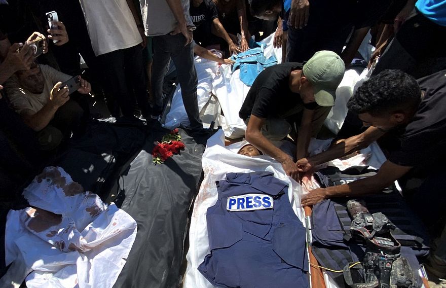 ޣައްޒާގެ ދެކުނުގައި އޮންނަ ޚާން ޔުނިސްގައި މިދިޔަ ހޯމަ ދުވަހު ދިން ހަމަލާގައި އަލްޖަޒީރާ، އެސޯސިއޭޓެޑް ޕްރެސް އަދި ރޮއިޓާސްގެ އިތުރުން އެހެނިހެން މީޑިއާތަކުގެ ފަސް ނޫސްވެރިއަކާ އެކު 20 މީހަކު ވަނީ މަރުވެފަ އެވެ. ޣައްޒާގެ ސިވިލް ޑިފެންސް އެޖެންސީން ބުނެފައިވާ ގޮތުގައި އިޒްރޭލުން އެ ދުވަހު ފުރަތަމަ ހަމަލާ ދިނީ ގޮވާ ގޮތަށް ހަދާފައިވާ ޑްރޯނެއް ހޮސްޕިޓަލުގެ އިމާރާތަކަށް ފޮނުވައިގެންނެވެ. އަދި އޭގެ ފަހުން ވައިގެ މަގުން ހަމަލާދިނީ އެވެ.
